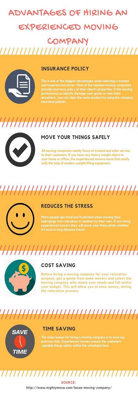 Relocating your home or office completely within a day is not an easy task. You need proper preparations and pack your things before shifting from one place to another place. Moving your bulky home or office objects is a difficult process. So obviously you need an experienced moving company help when shift your office or household things. If you hire reputed movers for your relocation you will get many advantages. In this blog we discuss about some of the advantages of hiring an experienced moving company.For more details,visit at http://www.mightymove.com/texas-moving-company/