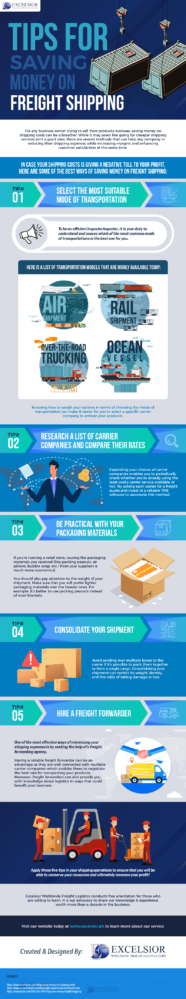 Want to learn more about the best ways on how to save money on freight shipping? Then read the infographic below created and designed by Excelsior.