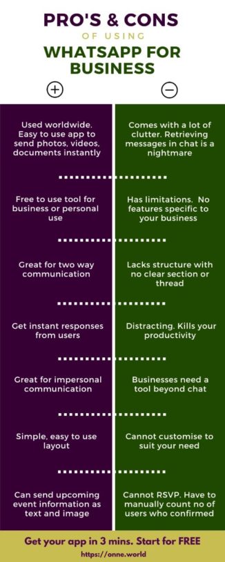 Pro: Everyone is on whatsapp. It makes it easy to get in touch with anyone in a jiffy.
