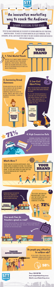 Often you might wonder what are the benefits of outdoor marketing over traditional marketing means. The merits of outdoor marketing are quite promising. There are various reasons why outdoor advertising is great for your business. In the below infographic you will find some of the main reasons why outdoor marketing can help you to amp up the marketing game for your brand. Make sure to go through these crucial aspects of outdoor marketing so that you can collect some more clarity about the same before you go ahead and invest in it. In this infographic, we will gain insight into some of the most celebrated reasons why businesses prefer outdoor marketing.