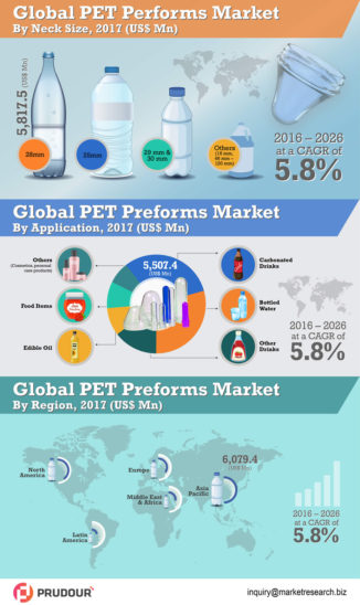 By region: The market in Asia Pacific accounted for highest revenue share in the PET preforms market in 2016, and is expected to register a CAGR of over 6 % between 2017 and 2026, owing to the presence of prominent players in the region.