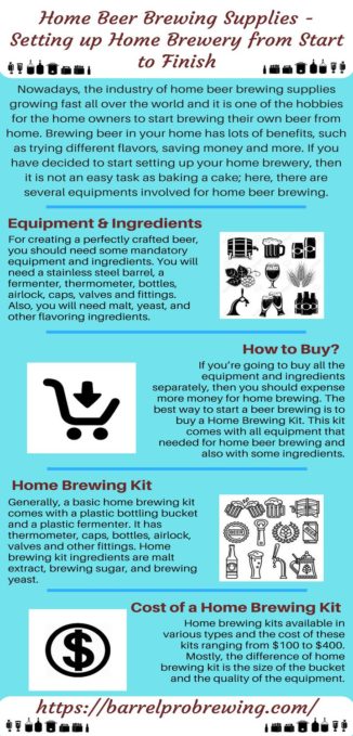 Nowadays, the industry of home beer brewing supplies growing fast all over the world and it is one of the hobbies for the home owners to start brewing their own beer from home. Brewing beer in your home has lots of benefits, such as trying different flavors, saving money and more. By trying the different flavors, your beer produces the delicious taste that you can’t find with today’s new brands. If you have decided to start setting up your home brewery, then it is not an easy task as baking a cake; here, there are several equipments involved for home beer brewing.