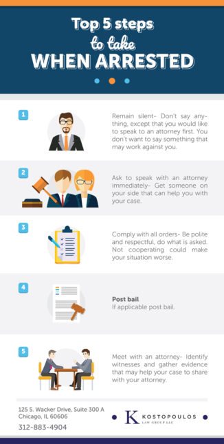 Facing an arrest is probably one of the most frightening things a person can experience. In a moment, you go from being in control of your life to being completely out of control. This infographic covers the top 5 steps you should take after being arrested. These steps include (1) Remaining silent, (2) Asking for an attorney, (3) Comply with all orders, (4) Post bail, and (5) Meet with an attorney asap. These steps, if followed, could make the arrest process smoother and less stressful.