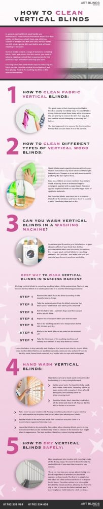 There are wide range of materials in which blinds are available like fabric, cloth, plastic etc. So, one need to go with the cleaning method suitable for particular type of blind. We can clean the fabric and cloth blinds in the washing machine on the appropriate settings. However, the vertical plastic blinds can be cleaned using duster, vacuum or a manufacturer approved cleaning tool.
