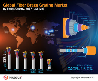 By region /country: The market in Europe accounted for highest revenue share in the global fiber Bragg grating market in 2016, and is expected to record CAGR of over 14.0% between 2017 and 2026.