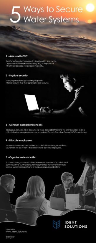 Water systems are crucial to all of the citizens because no one can live without water. If the water systems have problems such as toxins and other materials are flowing along with the water that is consumed by people, it will pose a social problem including chaos, rallies, and social demands. Hence, the government must always secure it using any of the following methods. Using of Cyber Security Evaluation Tool, physical security, background checks, employee education, and organization of network traffic. To understand all of these security measures, you can get full details on this infographic. Download it if you can because it will help you a lot.