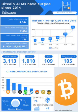 Bitcoin ATMs numbers surged 720% since 2016, According to Coin ATM Radar, the number of Bitcoin ATMs have increased drastically, from 500 in 2016 to 4,300 in 2019.