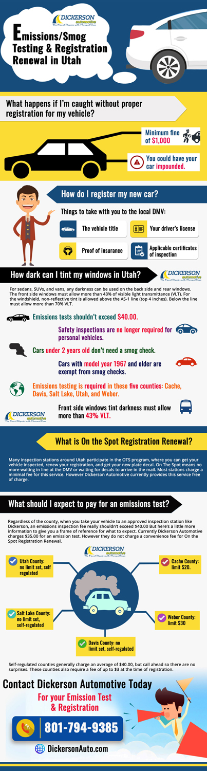 As of May 12, 2015, driving without registration was classified in Utah as a class C misdemeanor with a minimum fine of $1,000! This fine can be reduced to $200, however, if proof of registration is given at the time of the hearing, and if the vehicle had not gone unregistered for more than a year. But why play those odds? That’s still $200 you could’ve spent on something else. Worst case scenario: you could have your car impounded.