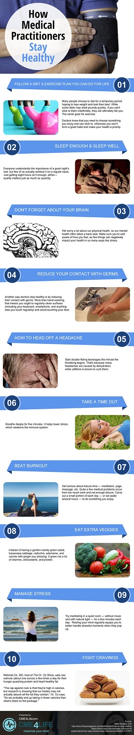 Getting sick is one of the most important things doctors and other medical practitioners try to avoid. Because of their varied responsibilities, they are prone to fatigue, stress, and sickness too. To prevent this from happening frequently, they have to follow a healthy diet, exercise regularly, get enough sleep, and meditate. This will help them handle physical and mental stress, fatigue and the constant pressure of their job.