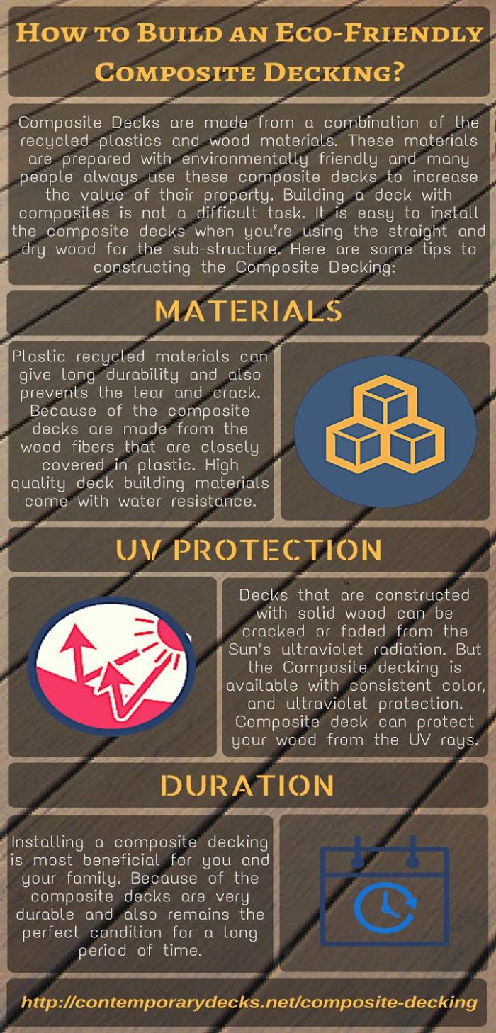 Decking is one of the important construction materials which can provide the stylish look to your property. Outdoor decking is the best place for relaxation with your family. Composite Decks are made from a combination of the recycled plastics and wood materials. These materials are prepared with environmentally friendly and many people always use these composite decks to increase the value of their property. Well designed and perfectly installed composite decks can give the most beautiful look to your property.