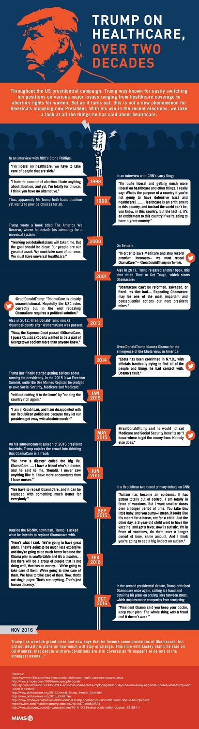 With his win in the recent elections, we look at all the things he has said about healthcare in America.
