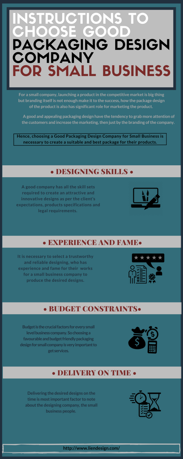 Branding means building a unique name, logo and advesting the product so that it will reach out in the market and mark its place. Every small business needs branding to showcase their products and service to the world. For a small company, launching a product in the competitive market is big thing but branding itself is not enough make it to the success, how the package design of the product is also has significant role for marketing the product. Packaging design, why it is so important? It is, because the success of the product can be differ by the packaging design. A good and appealing packaging design have the tendency to grab more attention of the customers and increase the marketing, then just by the branding of the company. Hence, choosing a Good Packaging Design Company for Small Business is necessary to create a suitable and best package for their products. To know more, visit http://www.liendesign.com/