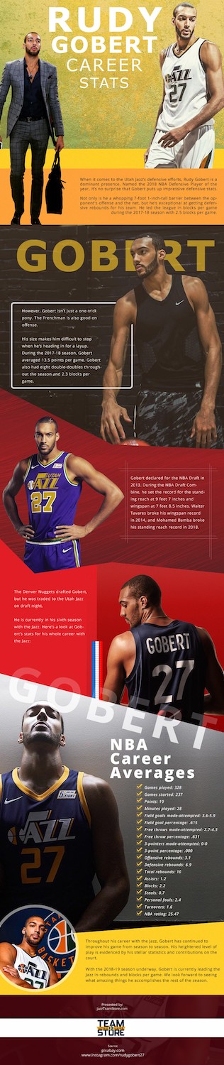 With a hundred basketball players coming from different NBA teams, Utah Jazz’ Rudy Gobert seemed to be the new love of the fans. His astounding records, especially in defenses, caused roars and thumb ups from the basketball lovers. This infographic gives a glimpse of Gobert’s records.