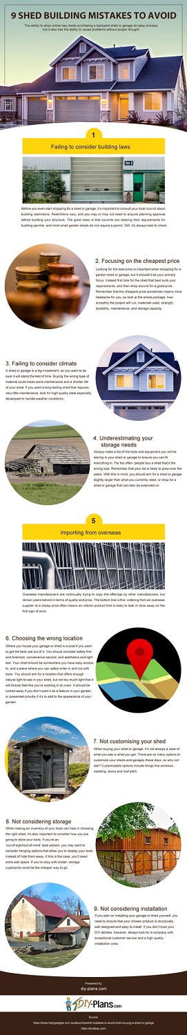 How big or small is your shed? Will it be able to store all your garden tools and equipment? Always consider the type of shed that will serve your purpose. Then make sure not to make any shed building mistakes like choosing the wrong size and location to install it. Avoid buying cheap ready-to-install sheds that can’t withstand different weather conditions.