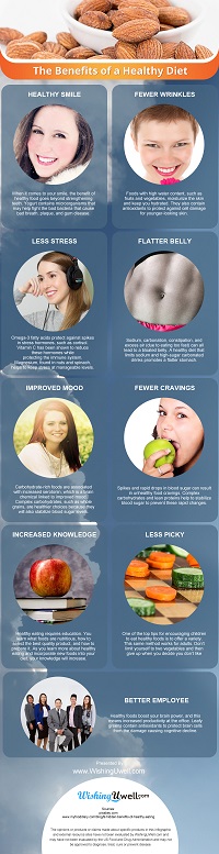 We all know that eating nutritious foods can promote weight loss, boost brain power, and improve health. The benefits, however, don’t stop there. Here’s an infographic presented by Wishing U Well. It talks about the benefits of a healthy diet.
