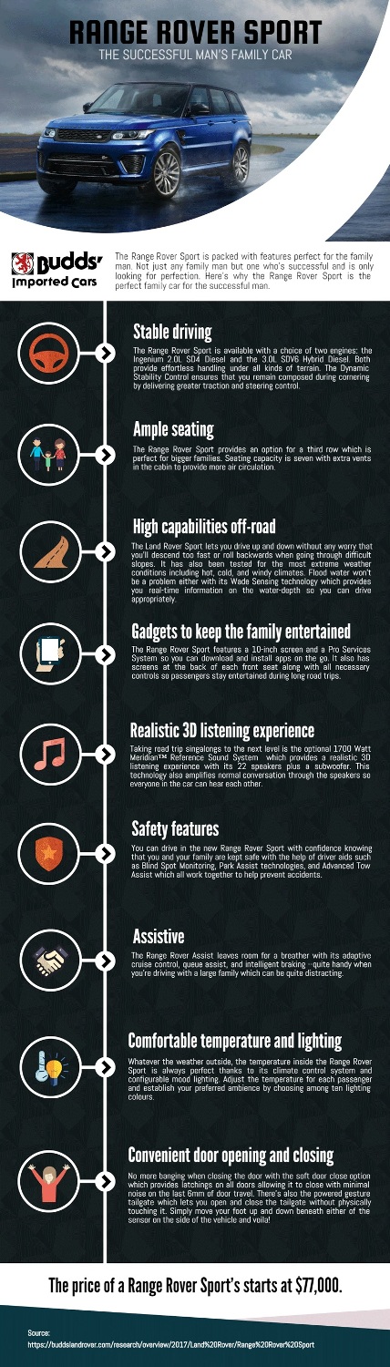 Loaded with gadgets to keep the family entertained, along with its stable driving and ample seating, these are just some of the features that make the Range Rover Sport so attractive. This vehicle is perfect for not just the family man, but for one who’s successful and looking for perfection.