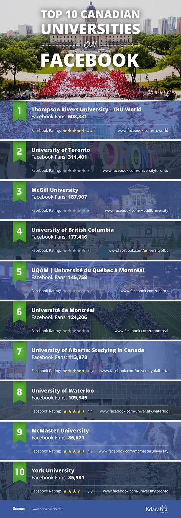 Link to Infographic: http://www.edarabia.com/135999/top-10-universities-in-canada-on-facebook/