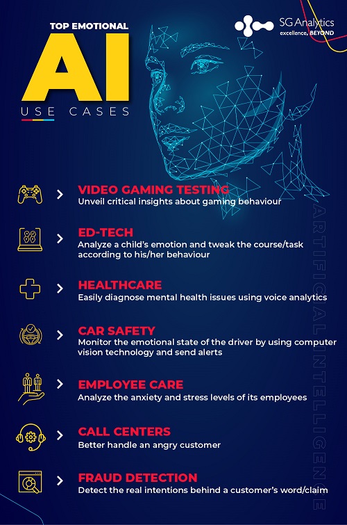 Emotional AI helps recognize people’s emotions. Businesses must leverage emotion AI to deeply understand their customers and personalize their experience. It helps to make our interactions more intuitive and responsive with technology, helping us explore new opportunities. Here are some top emotional AI use cases, indicating that emotional AI will be of great importance in the future.